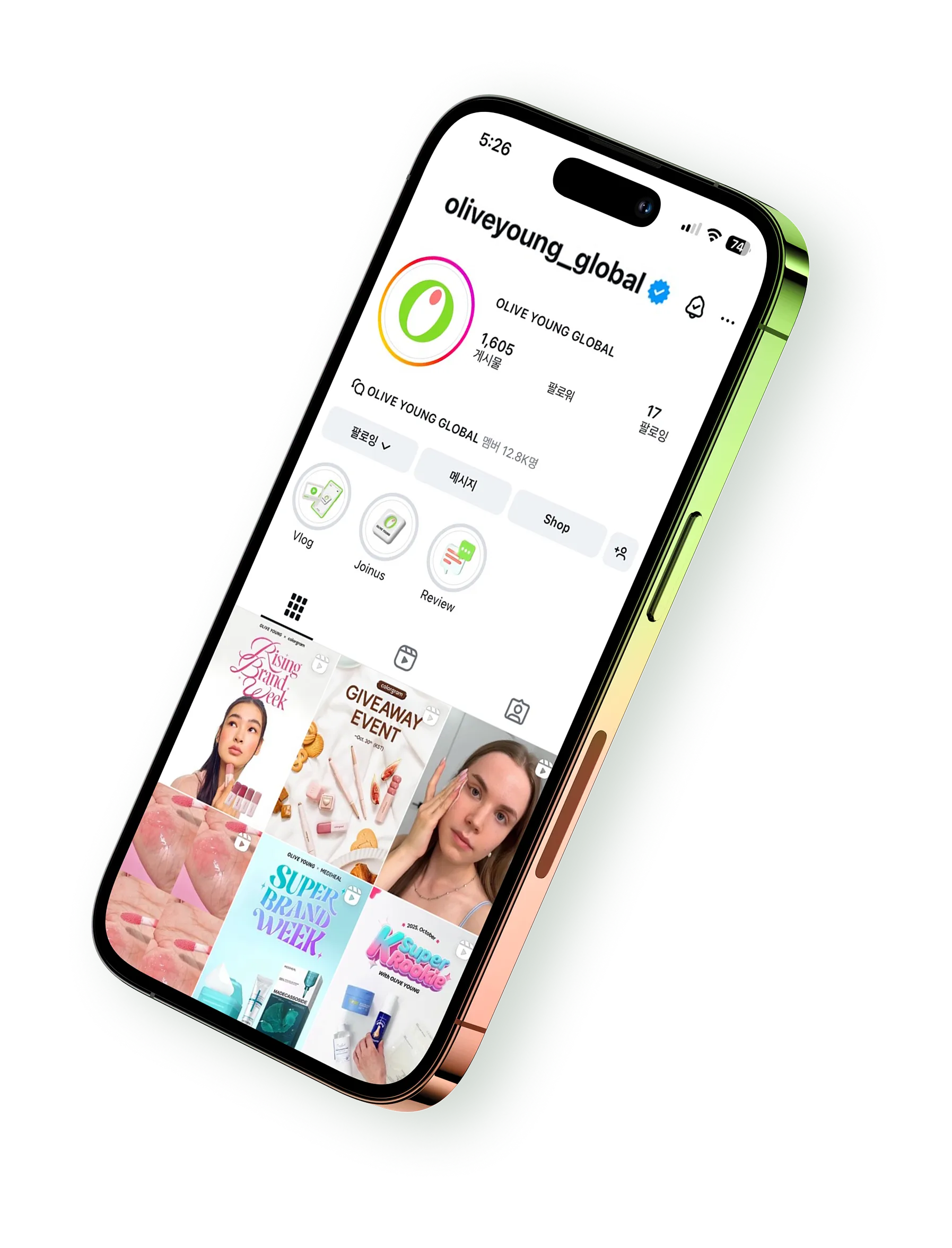 올리브영의 글로벌 확장을 위해, 우리는 콘텐츠 기획부터 촬영·디자인·모션 제작까지 Full Creative Pipeline을 구축했습니다. K-Beauty의 본질을 글로벌 고객에게 전달하는 데 집중하며, 채널별 전략적 SNS(IG/FB/X) 운영과 정교한 비주얼 크리에이티브를 통해 ‘OLIVEYOUNG GLOBAL’의 브랜드 존재감을 세계 시장에 강하게 각인시켰습니다.