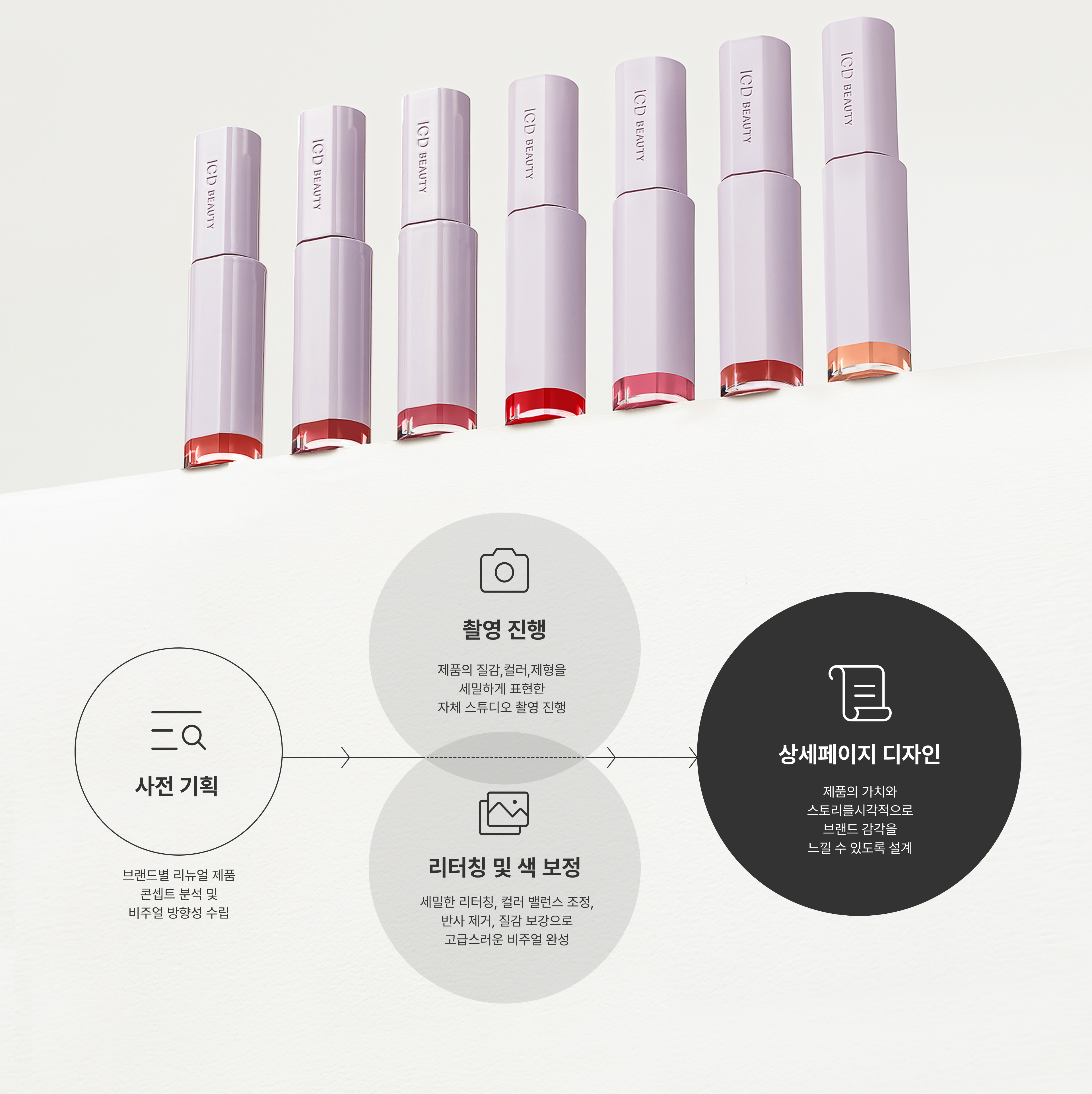 이미지의 질감, 색감, 디테일, 조형 밸런스를 정교하게 조율하는 과정에서 브랜드 이미지는 완성됩니다. 섬세한 색감 조정과 디테일 표현을 통해 시각적 깊이를 더하고, 모든 이미지는 브랜드의 언어를 담아 메시지를 시각적으로 전달합니다. 우리는 빛과 질감을 다루어 브랜드의 본질을 드러내며, 작은 픽셀 하나까지 설계된 정교함으로 시선을 사로잡고 신뢰를 구축합니다.